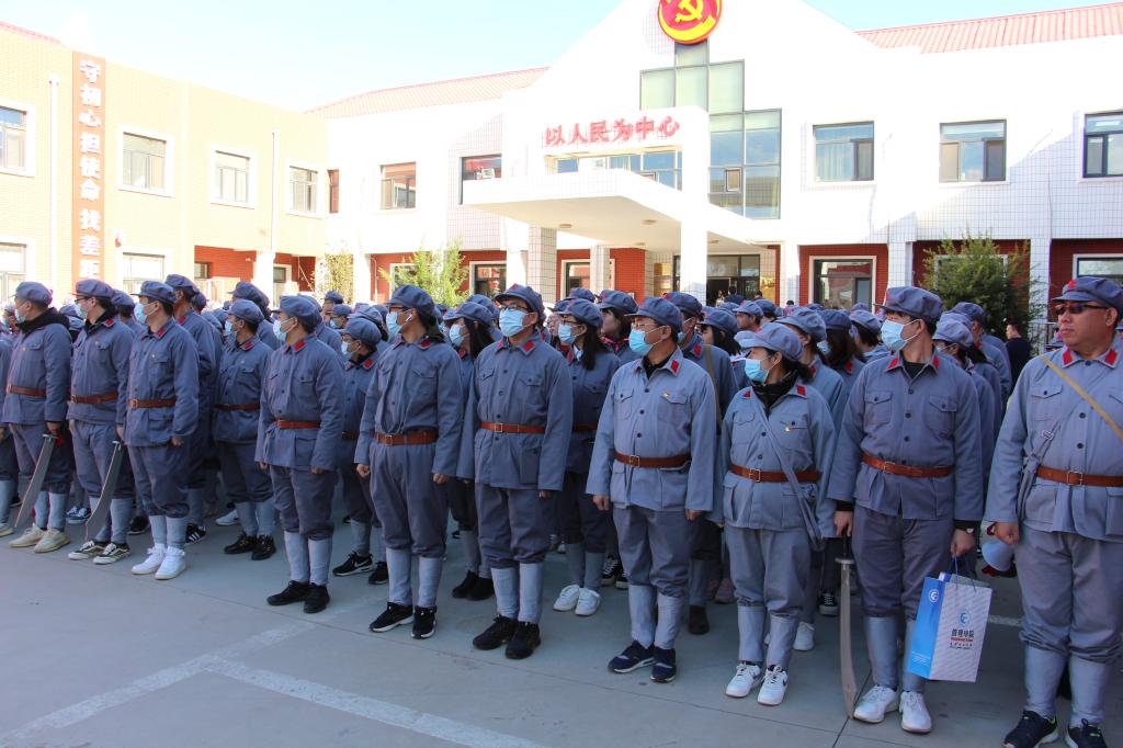 长征路沿着水运优美的大清水河徐徐铺开,沿途时而响起慷慨激昂的歌声,时而传来短促激烈的枪声,穿湘江、翻雪山、过草地,激战腊子口、飞夺泸定桥,教职工手拉手、肩并肩,在急行军中感受先烈为夺取革命胜利的艰辛付出。
