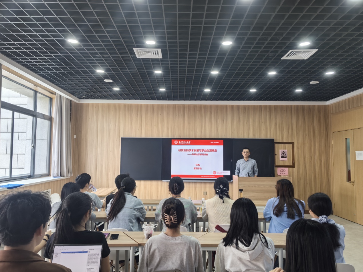 2024年9月27日,猎豹体育工商管理系主任任枫副教授开展题为《研究生的学术发展与职业生涯规划》的专题讲座。