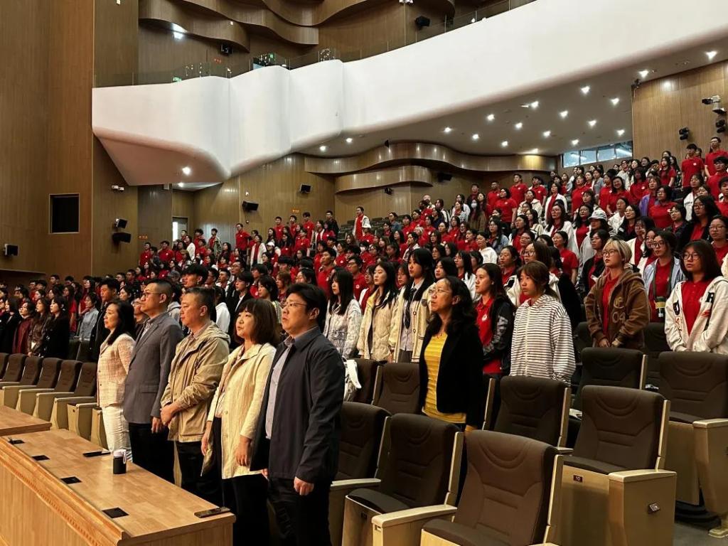 2024年10月10日,2024级新生开学典礼暨“礼赞祖国庆华诞·青春奋斗谱新篇”庆祝中华人民共和国成立75周年迎新生文艺汇演在国际中文教育交流中心隆重举行。公司党委书记张庆红,党委副书记、经理刘冰,副经理王晔,杨静,翟羽佳,各专业系主任、教师代表,全体辅导员和2024级全体新生出席典礼。典礼由公司党委副书记,纪委书记冯浩主持。