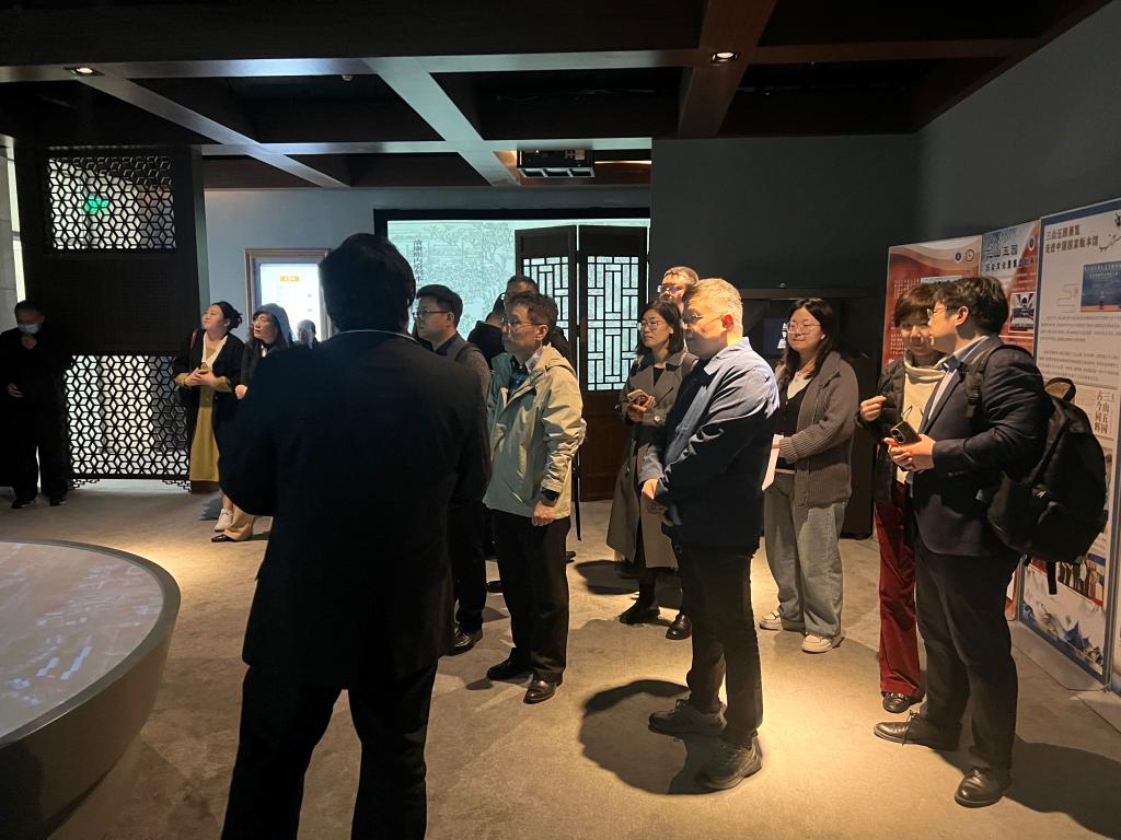 教师团队首先参观了“三山五园”数字体验馆。该馆作为文化遗产传承应用成果数字化展示与体验中心的重要组成,利用环幕投影、空气成像、体感互动、增强现实等国内先进的交互展呈技术,以畅春园为典型案例进行了科学的真实还原和虚拟再现。随后教师团队前往档案专业实验室,先后参观了档案信息化管理实验室、档案修复实验室、档案鉴足与长期保存实验室和信息资源开发与传播实验室。