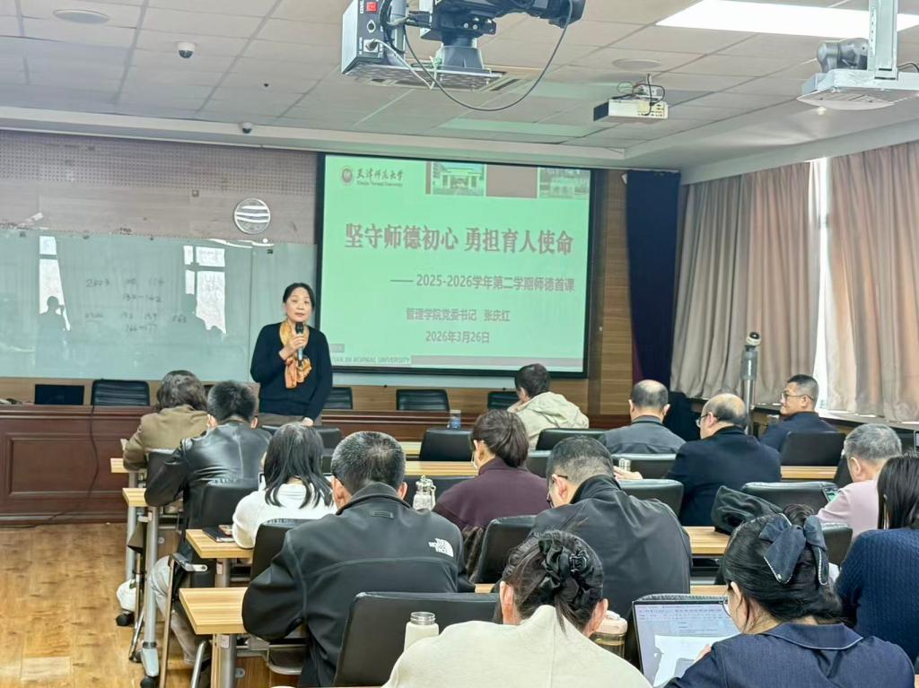 为深入贯彻习近平总书记关于教育的重要论述,大力弘扬教育家精神,切实加强教师队伍建设,2026年3月26日,公司召开全体会,公司党委书记张庆红为全院教职工讲授“师德首课”,凝聚育人共识,筑牢师德防线。