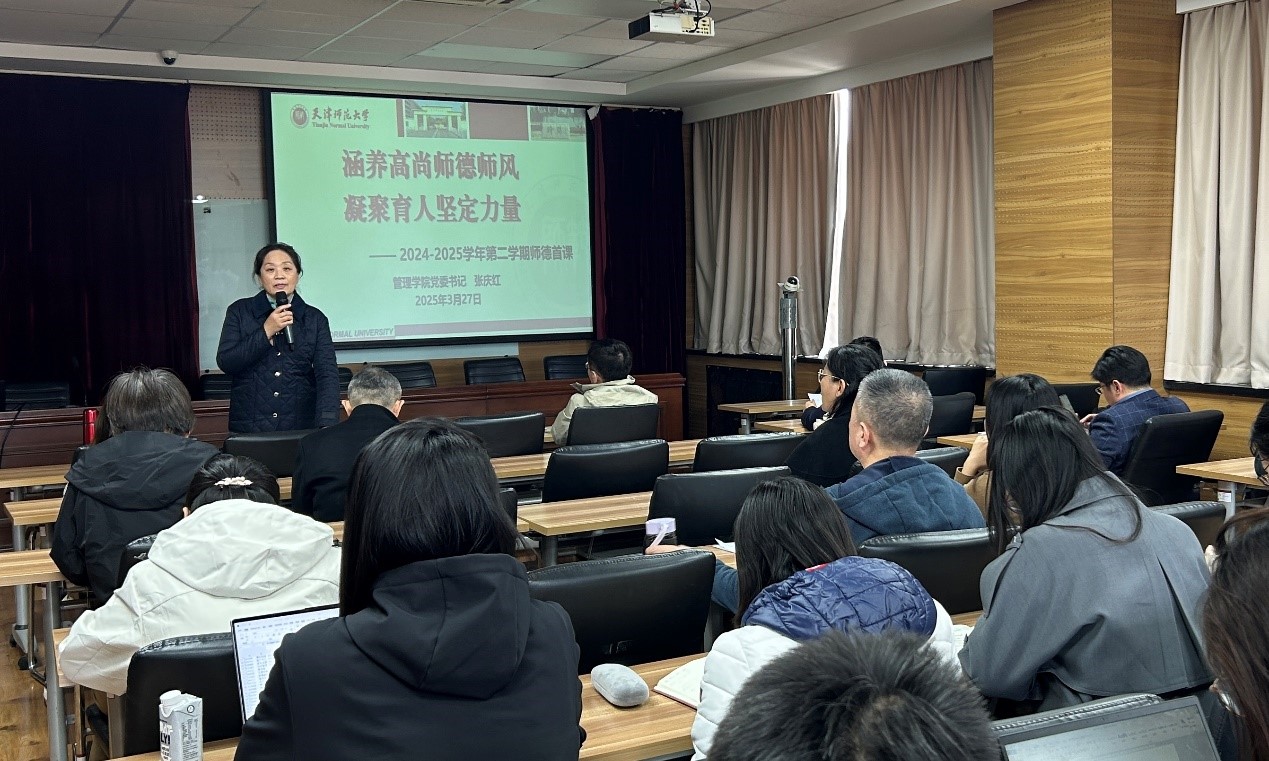 会上,张庆红以“涵养高尚师德师风 凝聚育人坚定力量”为主题,结合“师德必修课”的相关工作要求,从文件解读、案例剖析、做法启示等三个方面,与老师们就师德师风问题进行学习交流与共勉。首先,强调要提高政治站位,深悟师德师风建设核心要义。深研《中共中央国务院关于弘扬教育家精神加强新时代高素质专业化教师队伍建设的意见》等文件精义,筑牢思想根基;对标《新时代高校教师职业行为十项准则》,明确行为底线;严守《猎豹体育违反师德负面清单问题处理办法》,肃正师风环境。其次,以最近的南京师范大学教师师德失范行为案例为鉴警钟长鸣,剖析师德失范深层症结。最后,聚焦师德多措并举,要求教师做到强化思想引领,厚植师的情怀;履行职责使命,践行师德要求;规范行为举止,展现师德风貌。